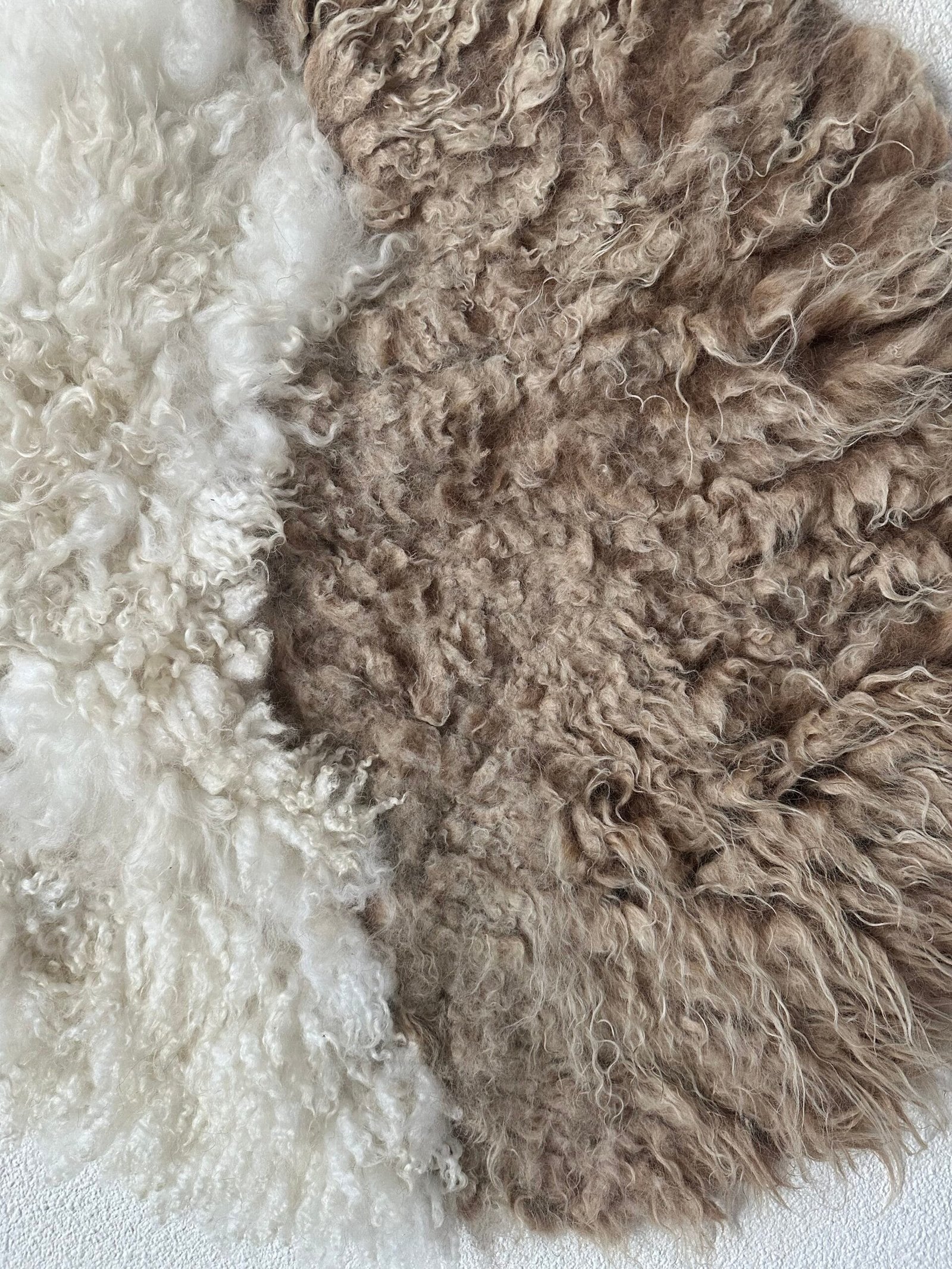 Een zeer bijzondere exclusieve gevilte vacht want deze schapen zijn zeldzaam in Nederland.