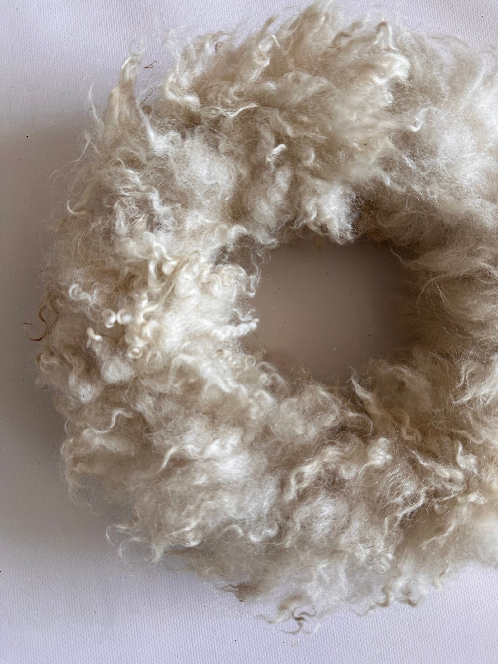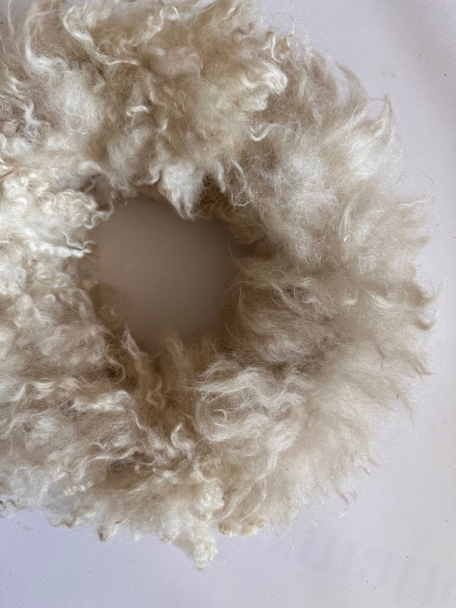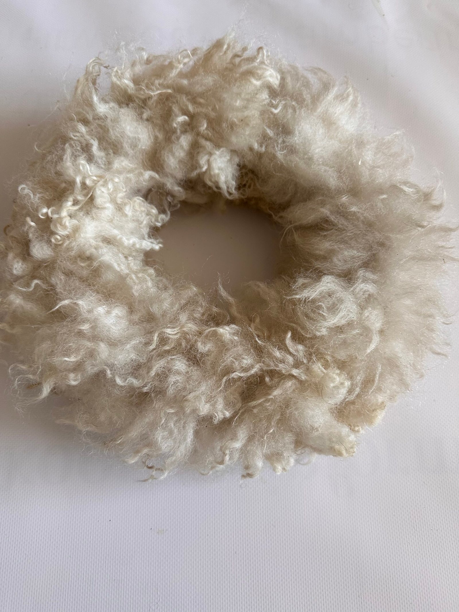 krans: 38 cm in de diamater. krullen wol van een kruising gotlande/heideschaap in een of white creme beige witte kleur.