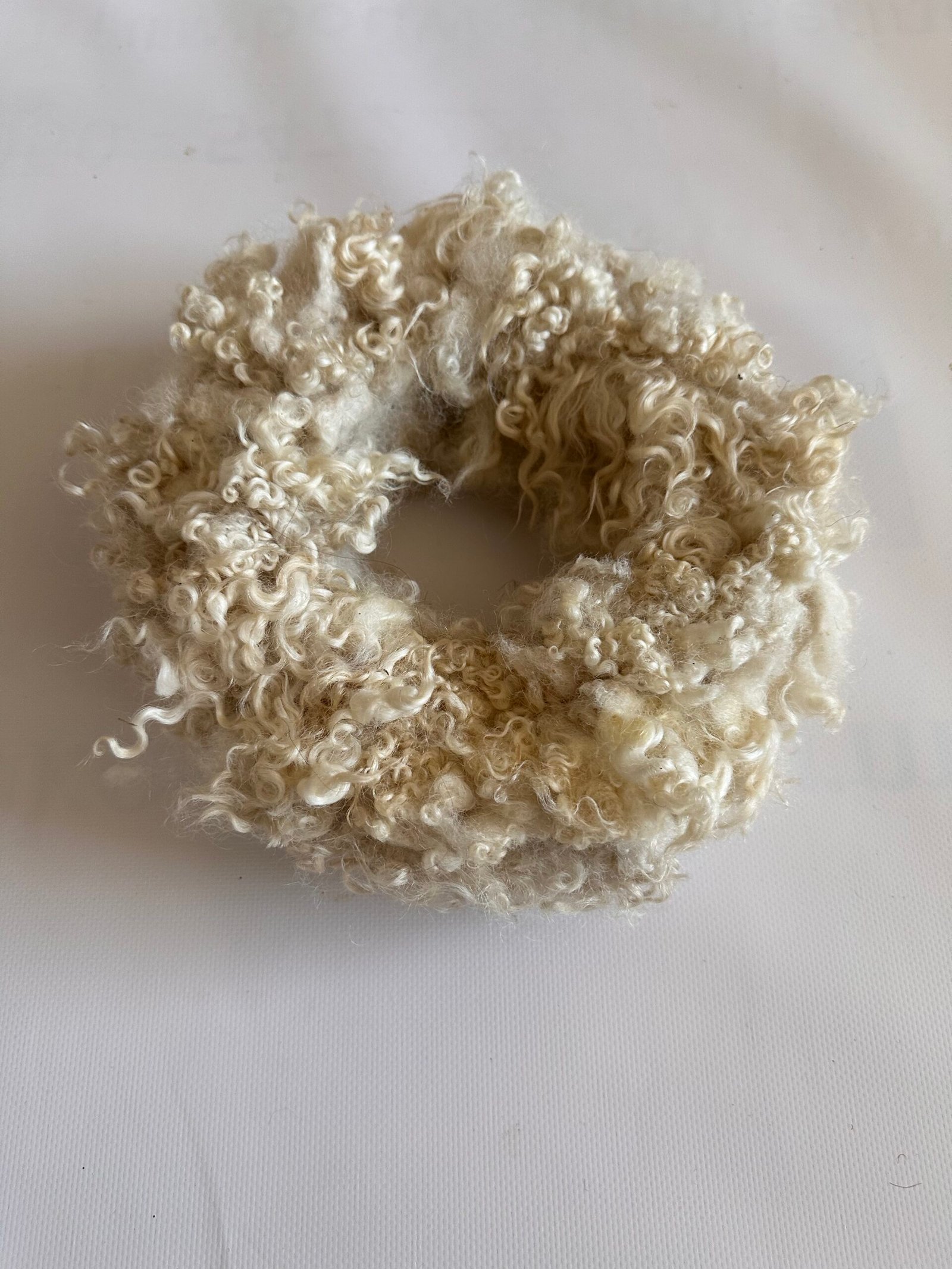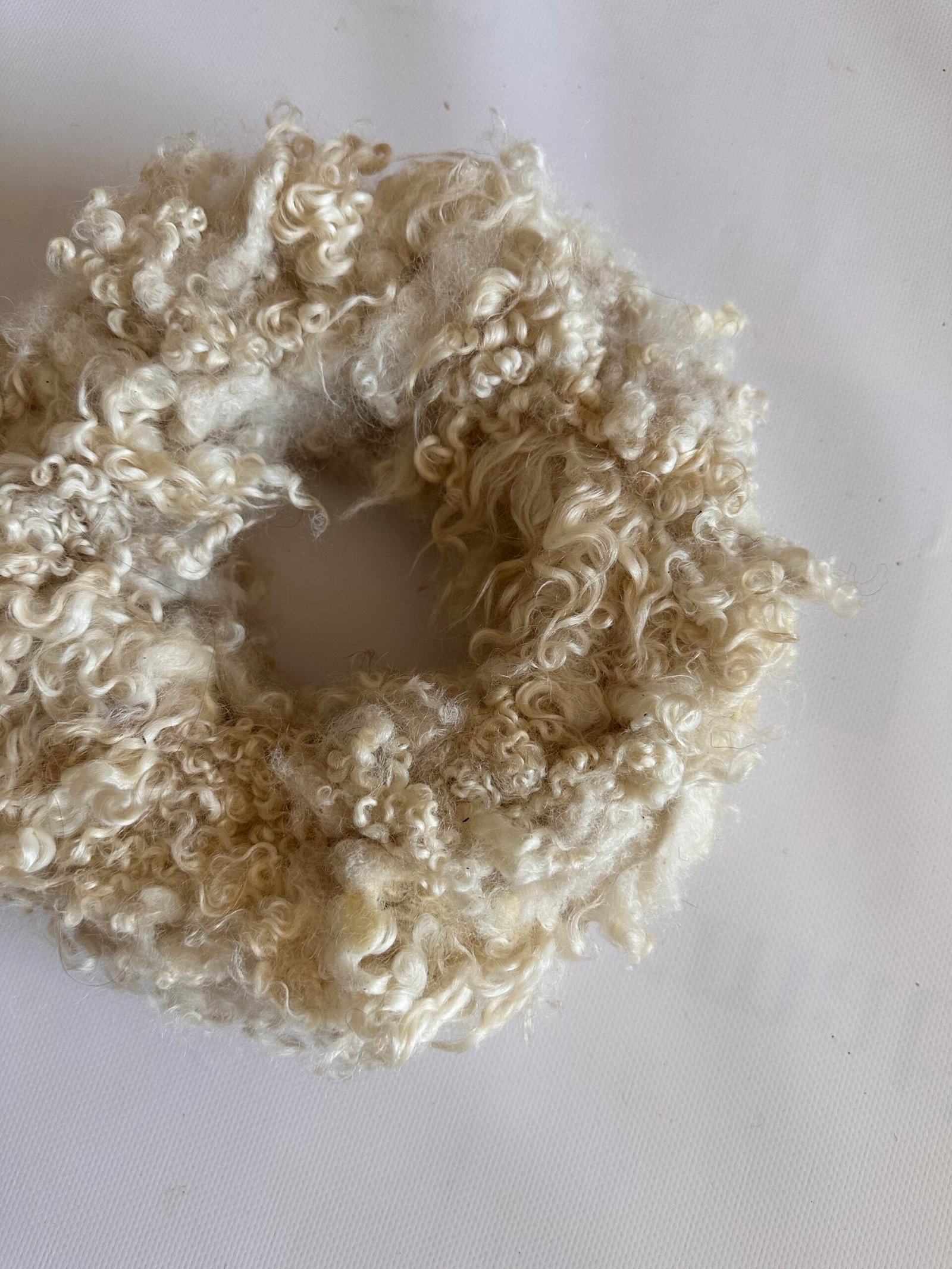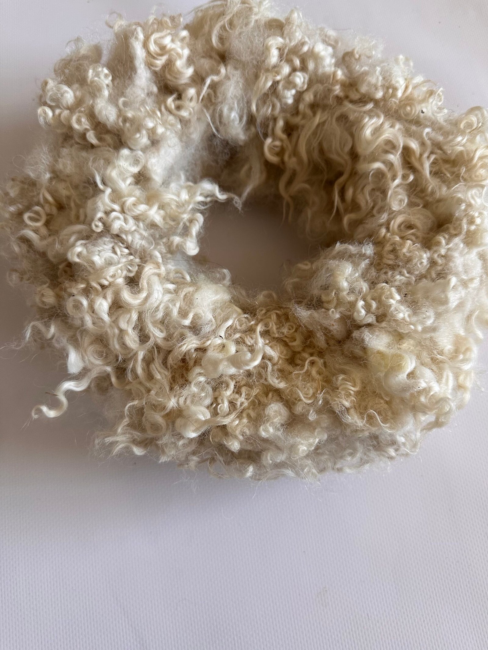 krans: 24 cm in de diamater. krullen wol van een kruising gotlande/heideschaap in een of white creme beige witte kleur.
