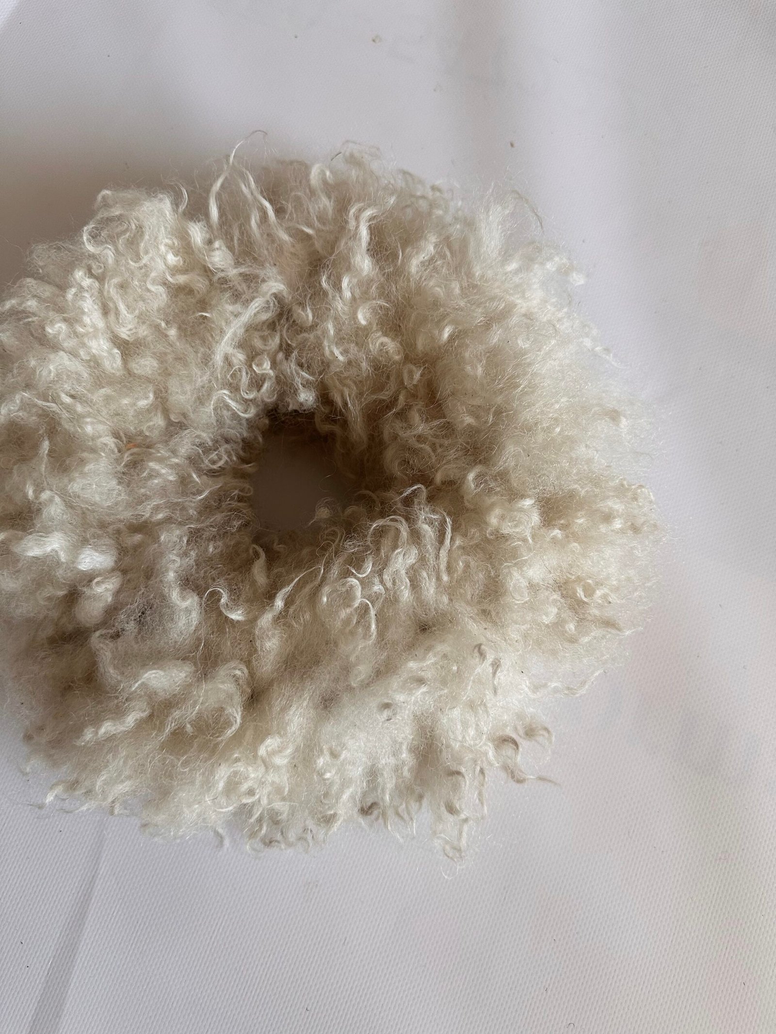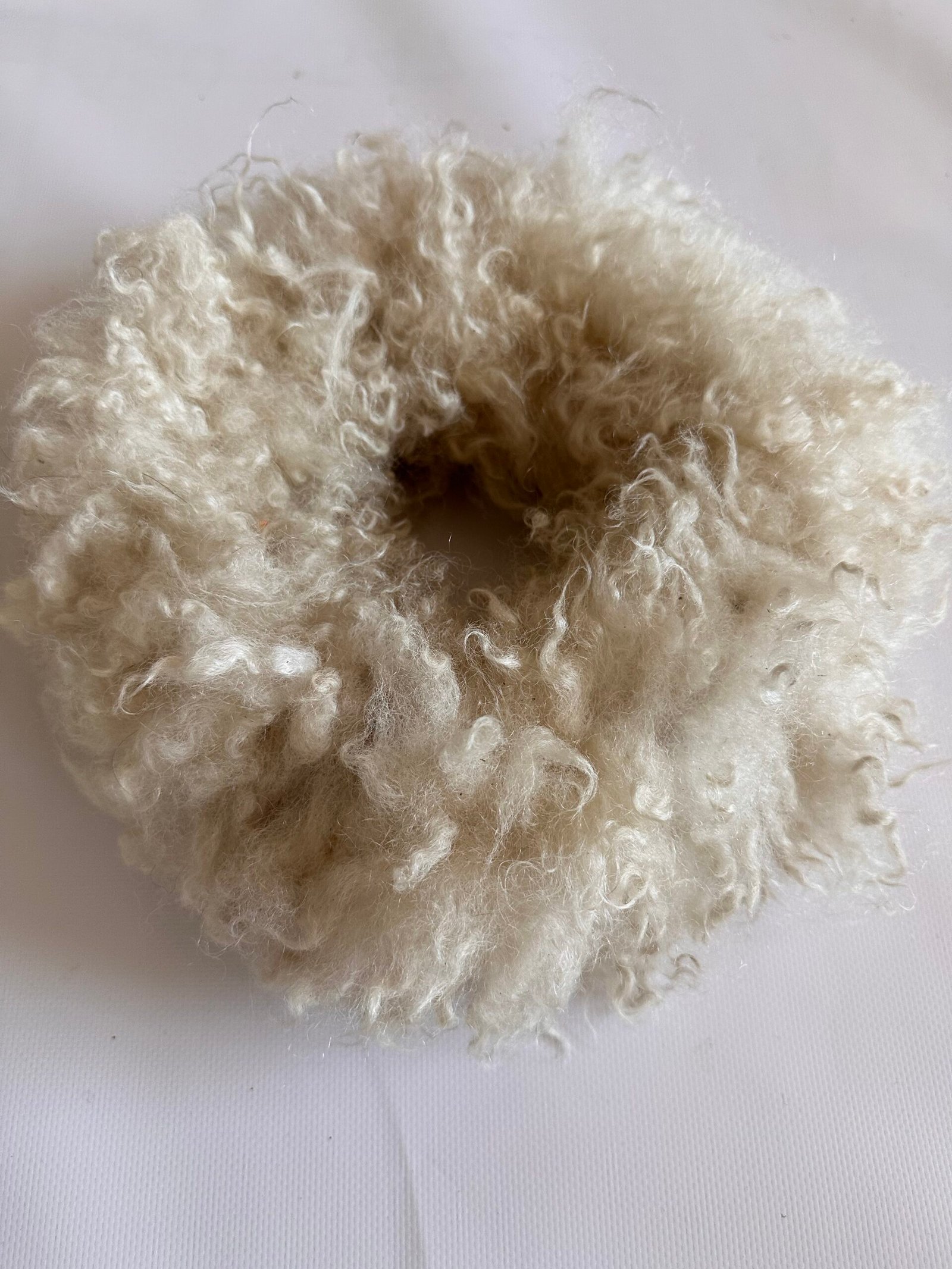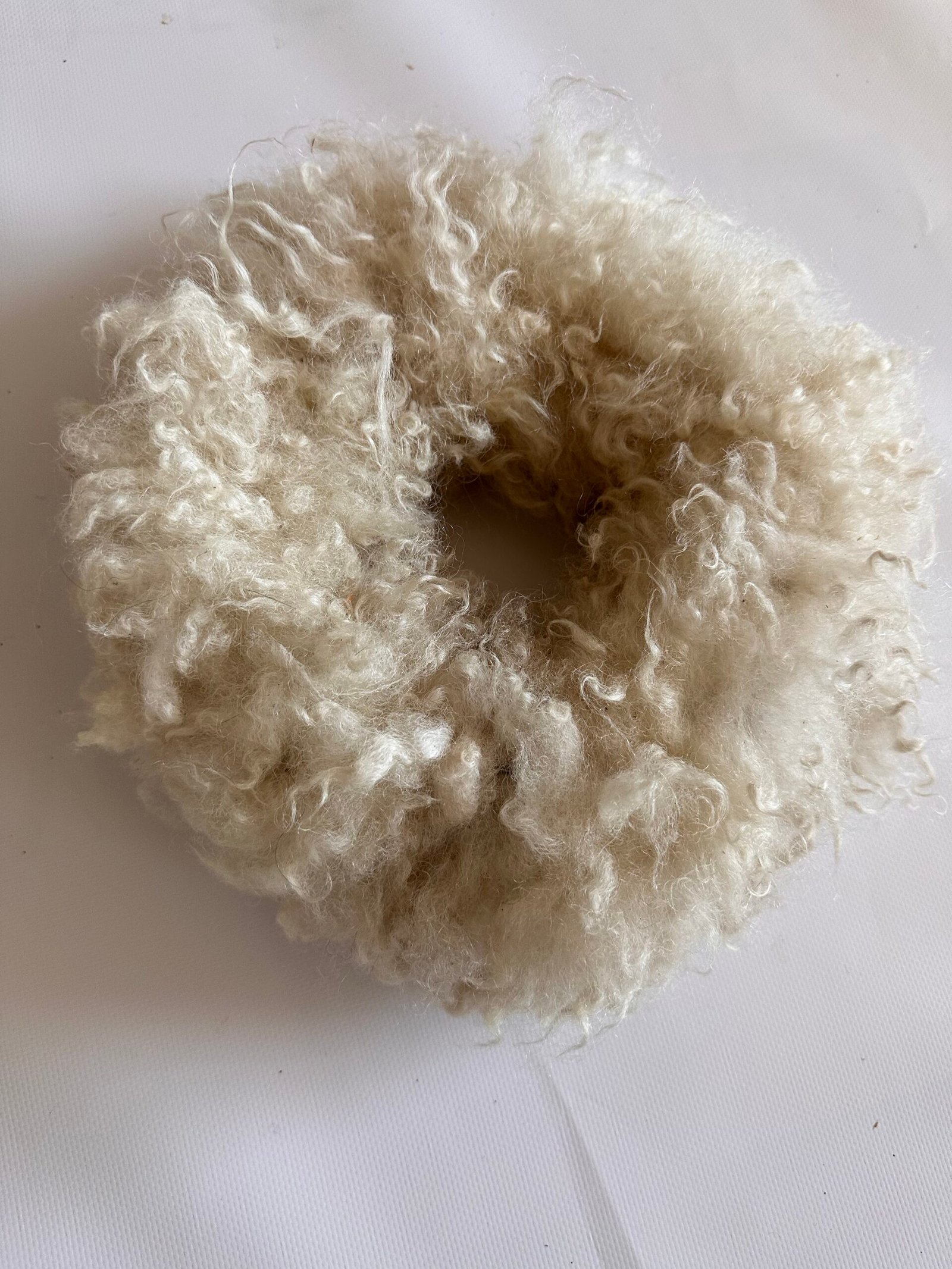 krans: 28 cm in de diamater. krullen wol van een kruising gotlande/heideschaap in een of white creme beige witte kleur.